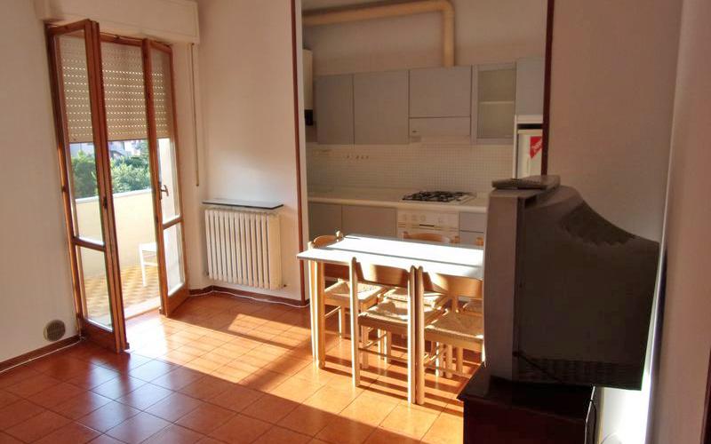 L'immobile è composto da ingresso, ampia zona giorno con living e cucina a vista con un accesso diretto al balcone, un disimpegno, due camere ed un bel bagno finestrato completo di vasca.