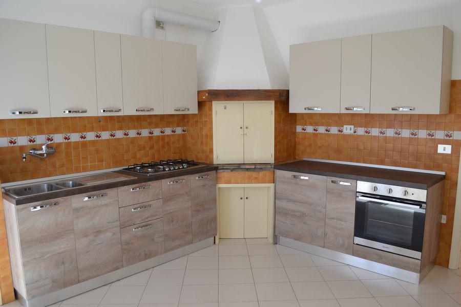 La superficie totale è così suddivisa: il piano terra ospita un appartamento di 100 mq composto da cucina a vista, soggiorno con camino, disimpegno e bagno finestrato. Pavimenti in ceramica.