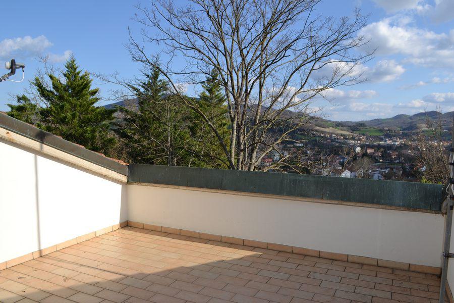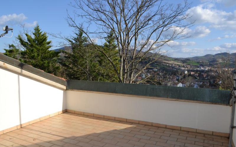 La soffitta vanta anche un particolare terrazzino a tasca di 18 mq da cui si gode una bellissima vista sul paesaggio circostante.