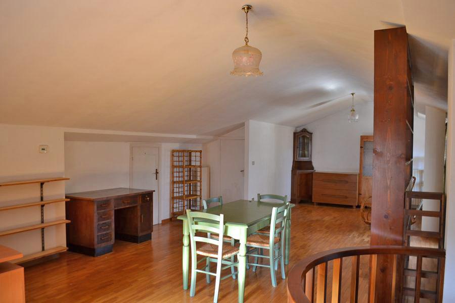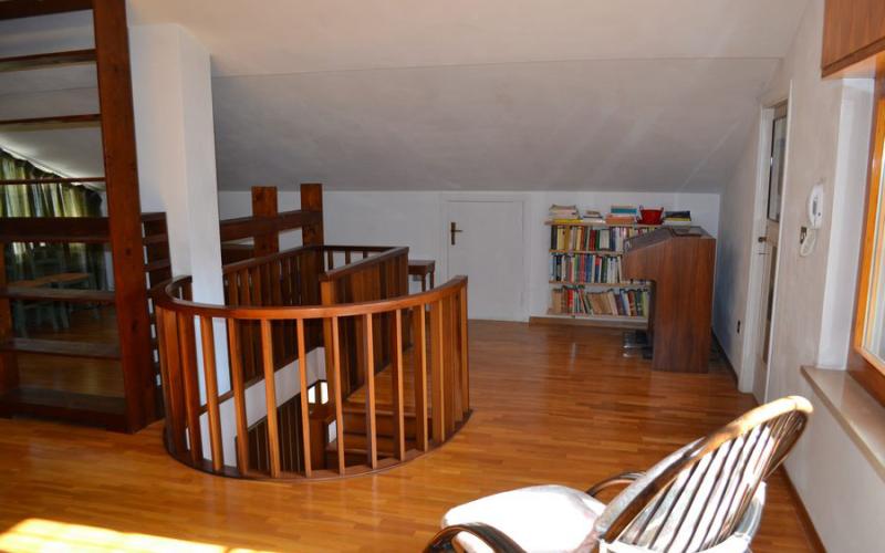La caratteristica scala in legno che collega tutti i livelli della casa, porta alla soffitta abitabile di 90 mq con ampio openspace rifinito a parquet, un bagno ed un comodo ripostiglio.