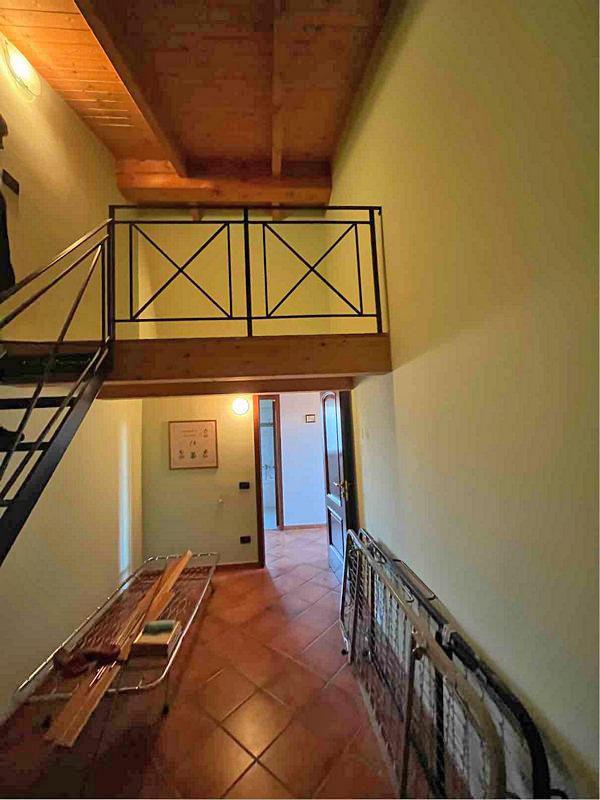 Il primo piano è riservato alla zona notte, suddivisa in quattro camere, un ulteriore bagno finestrato con vasca, un ripostiglio, una grande terrazza panoramica ed un balcone. Le stanze di questo piano presentano un suggestivo tetto in legno con travi a vista, che rendono gli ambienti ancora più caldi e confortevoli.