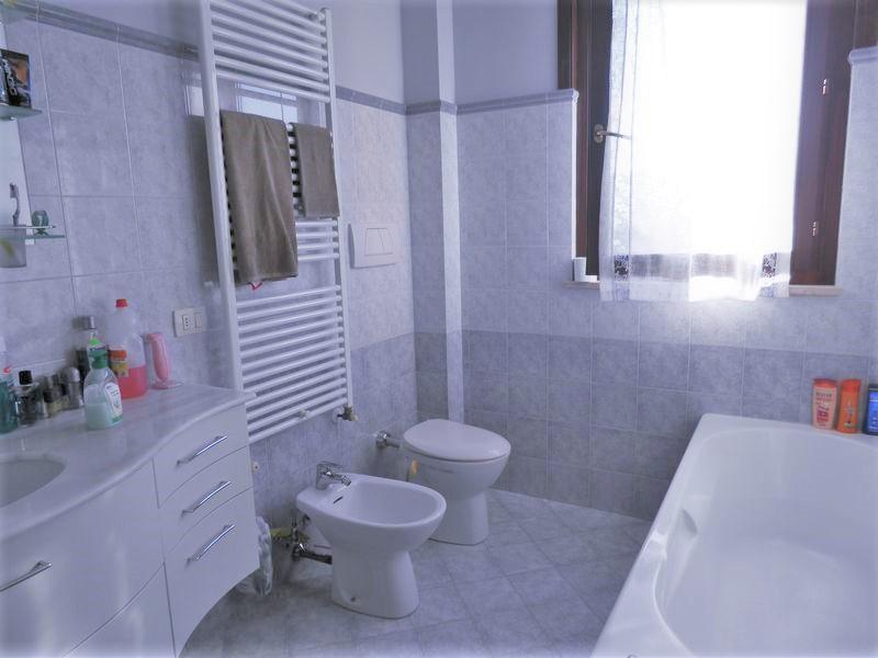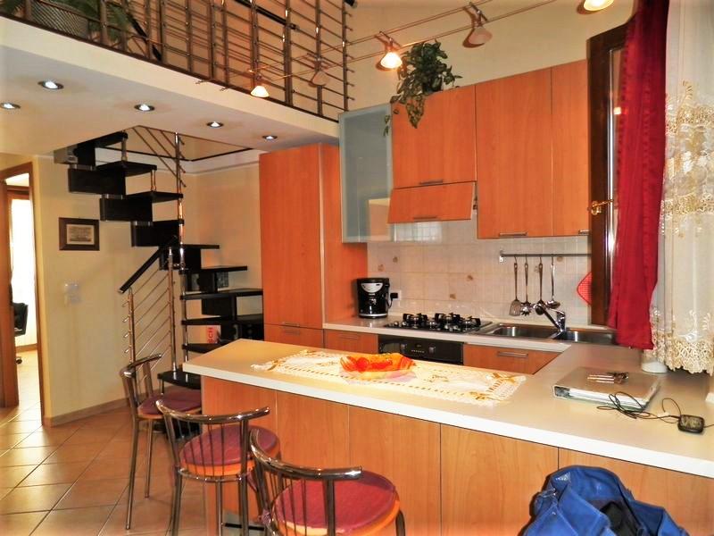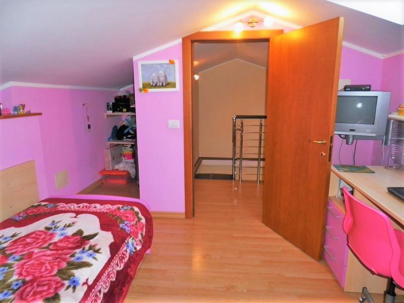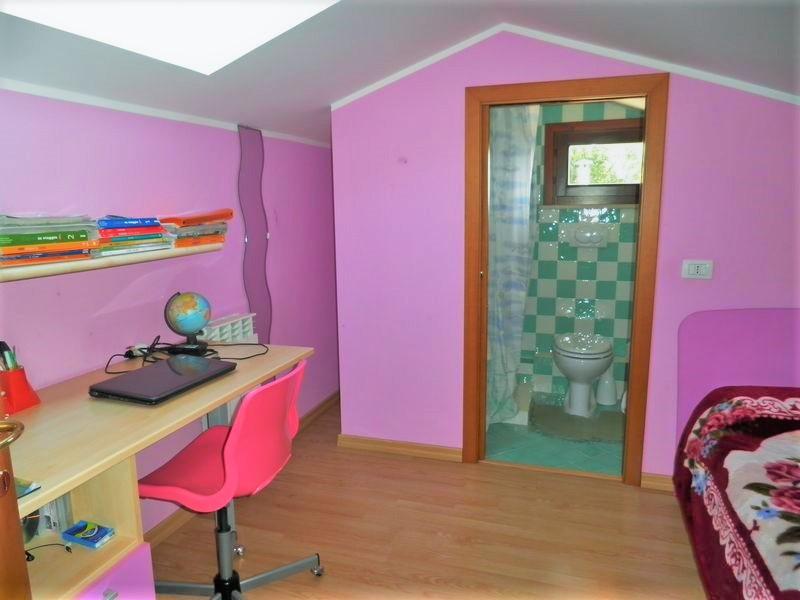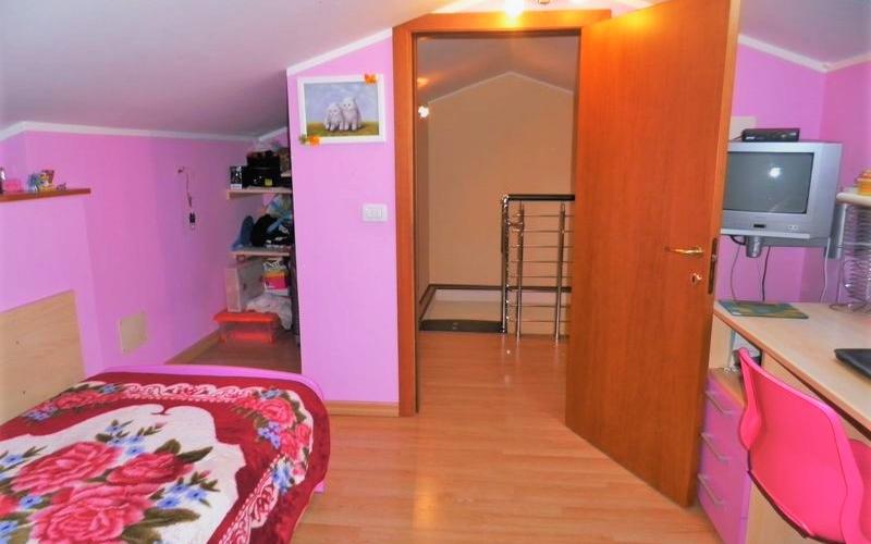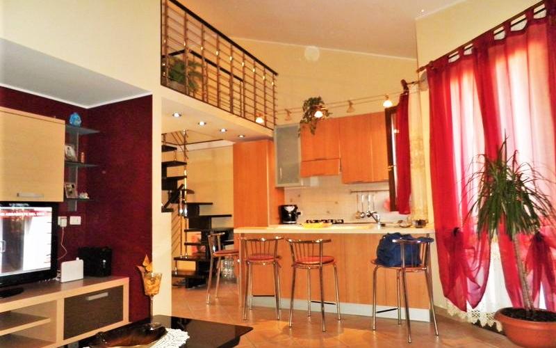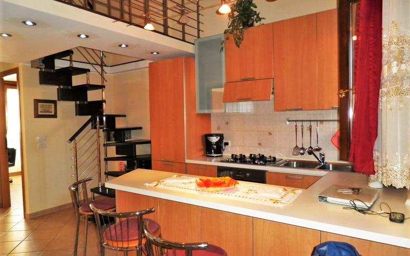 Appartamento con ottime finiture, al Primo Piano con ingresso indipendente. Ingresso-soggiorno con angolo cucina e accesso al terrazzino. Camera matrimoniale con ampio balcone, cameretta, bagno con vasca, cameretta, lavanderia. Accesso al soppalco di 20 mq da pregiata scala in acciaio e legno: cameretta con bagno e armadio a muro. Pavimenti in monocottura di ceramica posata in diagonale, impianto autonomo a metano, Infissi in legno con vetrocamera, persiane in alluminio coibentato con effetto legno, zanzariere in tutte le finestre. Al Piano Seminterrato garage attrezzato a comoda taverna con cucina, bagno con doccia, camera. Classe Energ.: E: EPi: 123.  Prezzo € 125.000,00 tratt.